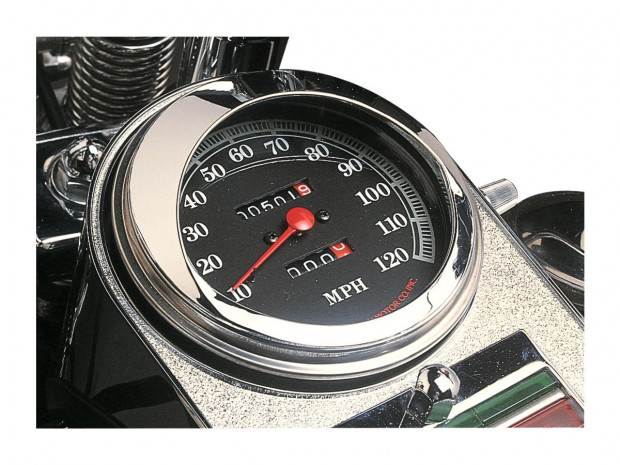 Das verchromte Visier ist aus Zinkdruckguss gefertigt und passt optisch zu den anderen Custom Chrome Mirage-Zubehörteilen. Die Montage erfolgt schnell und einfach mit dem mitgelieferten klaren Silikonkleber.