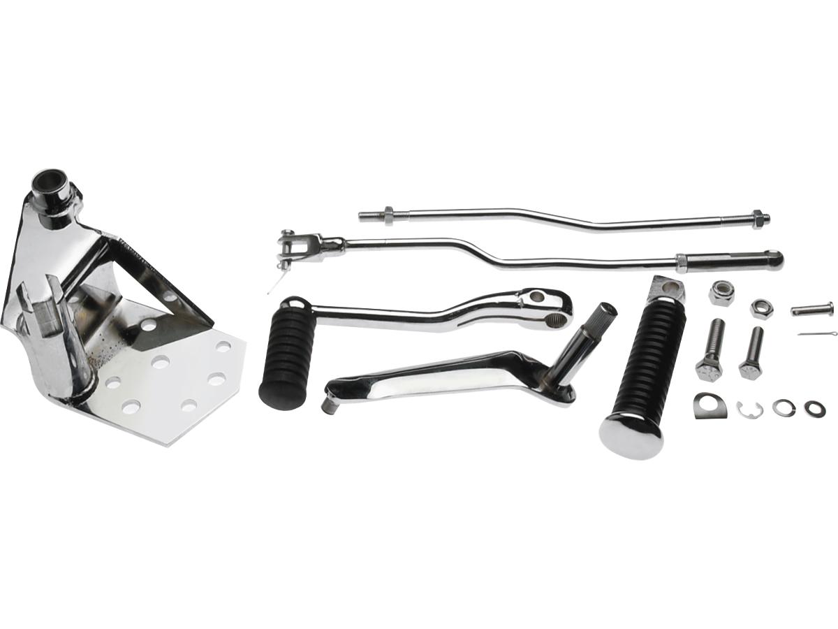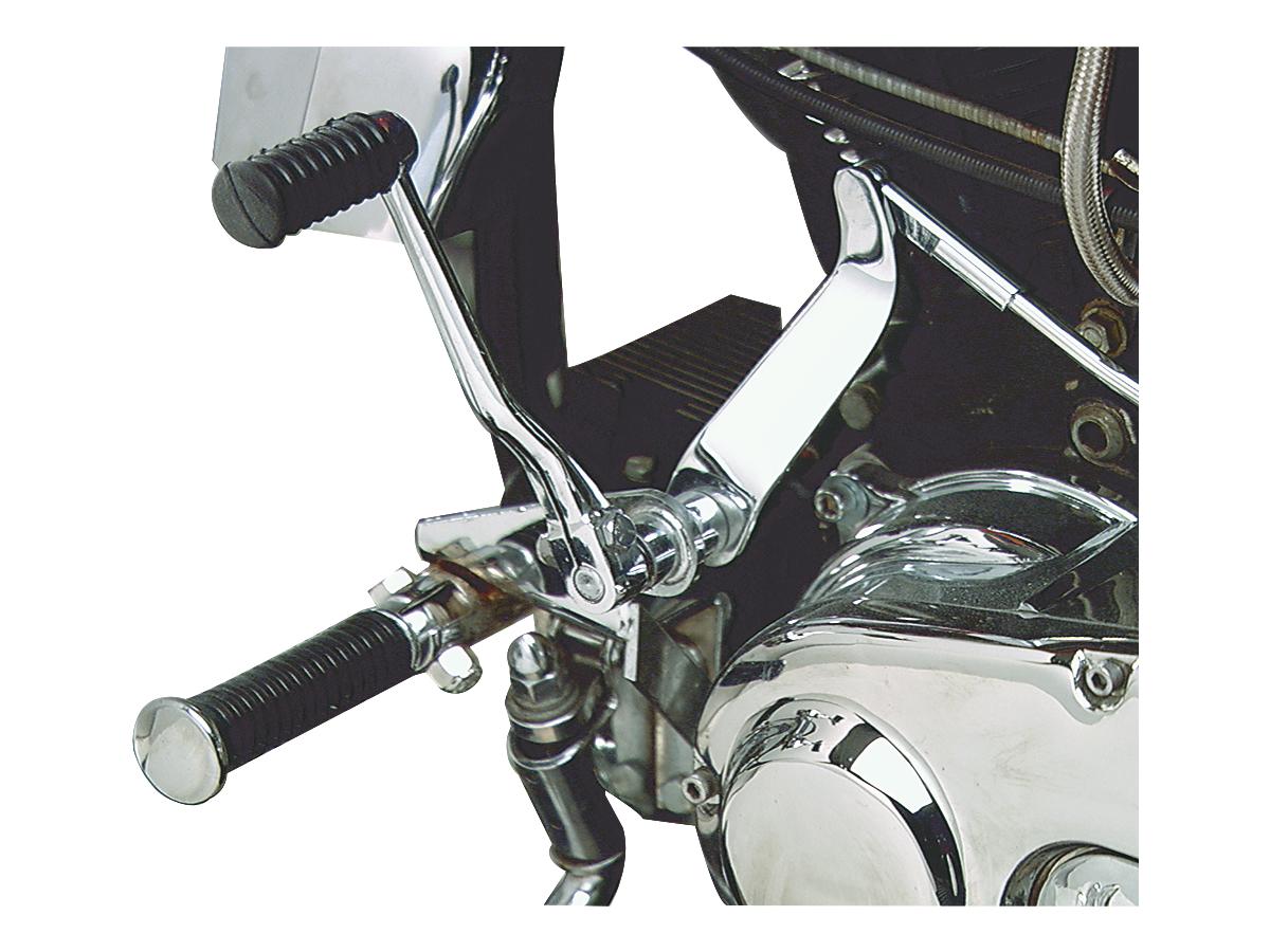 Mit diesem verchromten Vorwärtssteuerungs-Kit lassen sich FX- oder FL-Modelle mit Trittbrettern so umrüsten, dass sie den sauberen, glatten Linien der späten Softail-Modelle ähneln. Aus schwerem Stahl gefertigt, sind sowohl die Brems- als auch die Schaltseite verchromt und werden komplett mit Fußrasten und Befestigungsmaterial geliefert. Der Hauptzylinder ist separat erhältlich.