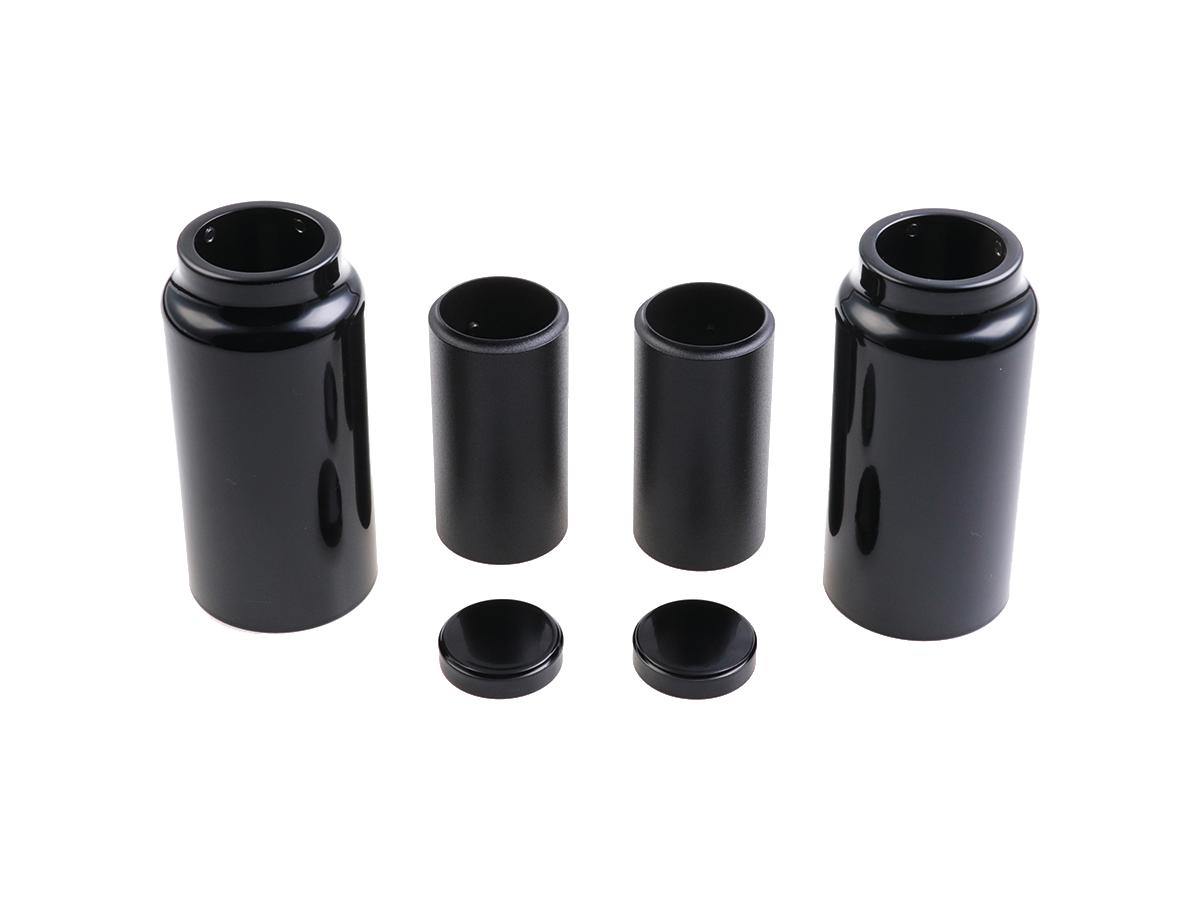 6-Piece Fork Covers with lower Fork Aluminum Covers Mid Version, with Cult-Werk Logo, with OEM Turnsignals and relocated OEM Headlamp Mask Gloss Black Powder Coated