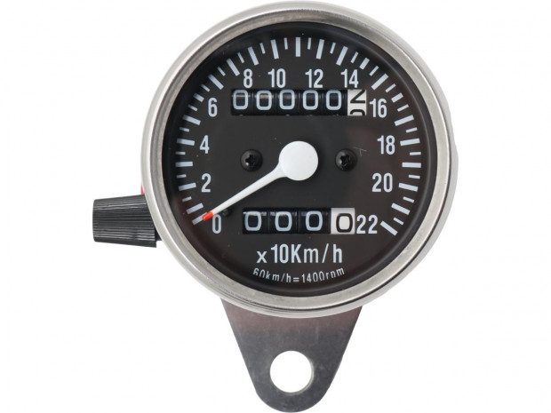 Diese Messgeräte verfügen über verchromte Gehäuse mit polierten Edelstahlblenden, starke Chromstahlhalterungen, gummierte Lenkerklemmen, präzise, nicht schwankende Anzeigen und 12-Volt-Zifferblattbeleuchtung. Sie messen 2 5/8"-breit x 2 1/16"-tief. Die robusten Gehäuse sind wasser- und vibrationsbeständig. Die Tachometer benötigen Kabel mit 12 mm Gewindemuttern.