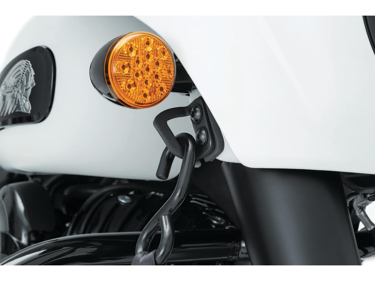 Das Trailern Ihrer Indian ist jetzt viel einfacher geworden. Diese aus haltbarem Stahl lasergeschnittenen Halterungen werden an der unteren Gabelbrücke befestigt und bieten einen sicheren Ort zur Befestigung von Gurten für einen einfachen und sicheren Transport.