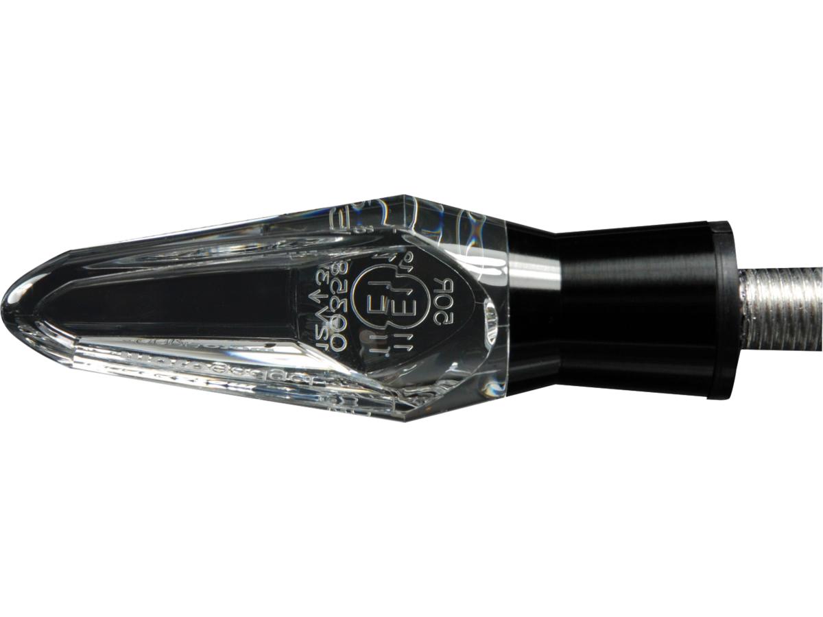 Der mo.blaze ice erscheint durch den transparenten Glaskorpus, der aus einem kratzfesten Kunststoff besteht, sehr neutral und unauffällig. Der kleine Alusockel aus Billet-Aluminium ist schwarz eloxiert oder hochglanzpoliert erhältlich. Der Blinker passt zu allen Styles, Lackierungen und den unterschiedlichsten Motorrädern.