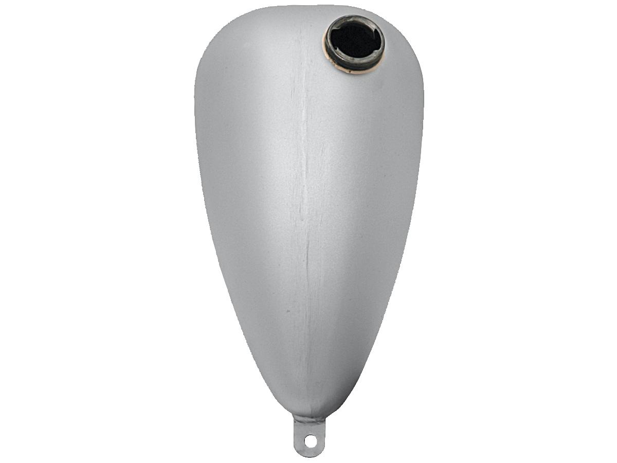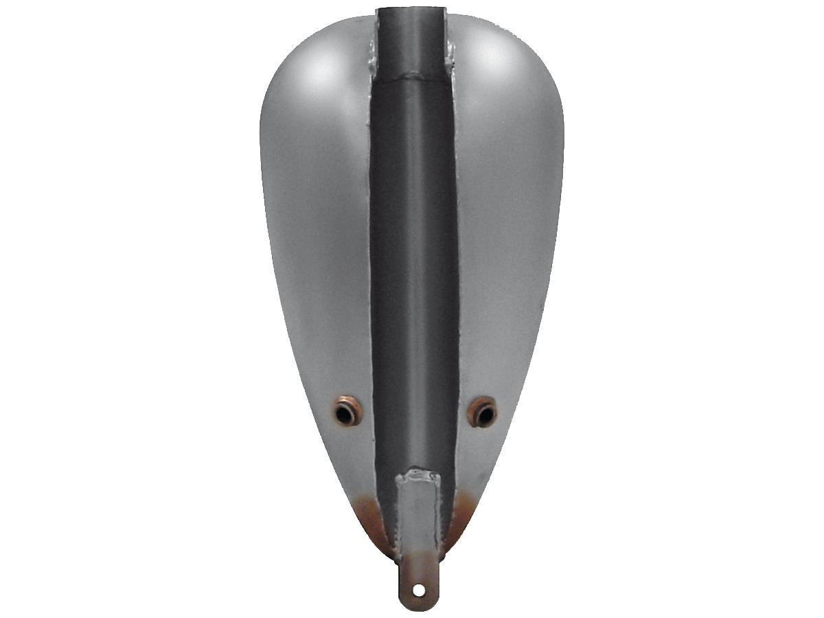 These small gas tanks look awesome! Great lines, and only 16 1/2” long, 9” wide and 7” deep. For custom applications with 2 mounting styles available. The Narrow “Mini Mustang” tank has a capacity of 2.4 gals., with tunnel measuring 2 1/4” wide x 2 1/2” deep and front/rear mount tabs. Total length tab center to tab center is 17”. Made in Nevada, USA by the crew at Paughco.