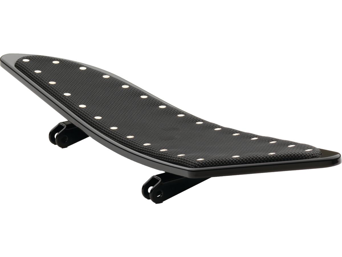 CycleSmiths Banana boards have a distinct look with their long shape and curved front & rear tips. They feature a high-grip rubber surface that is riveted to the footboard for a very cool look. They are available in three lengths, matching passenger floorboards, brake pedal pad, shift pegs, and footpegs are also available.