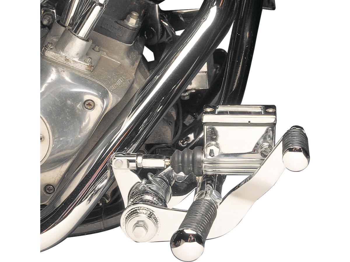 These affordable kits include O-ring footpegs and toe pegs, and chrome master cylinders. The brake pedals and shift levers ride on bronze bushings giving smoother pedal action. The footpeg supports have female clevis’ that will accept most aftermarket footpegs. Kits include installation instructions, a universal nylon brake line kit, mounting hardware and a selection of shifter rods. Fit all 4-speed FL, FX models from 58-86 (except 4-speed Softail models), and 5-speed Softail models from 86-99.