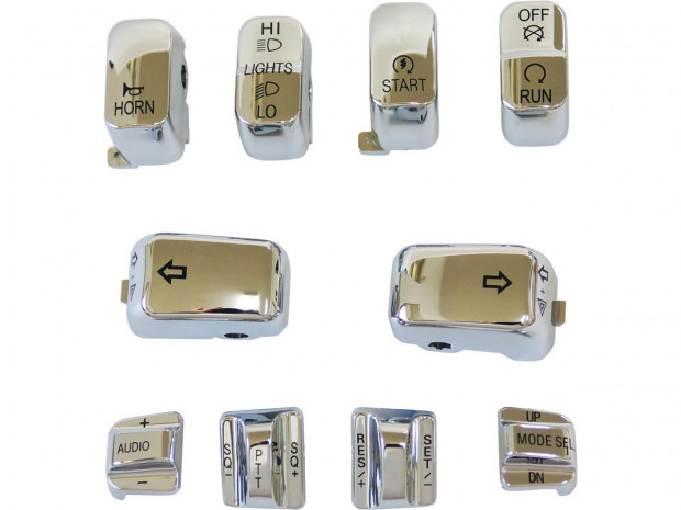 10 PC Switch Cap Set with Audio and Cruise Chrome Hand Control Switch Cap Kit With audio and cruise control buttons