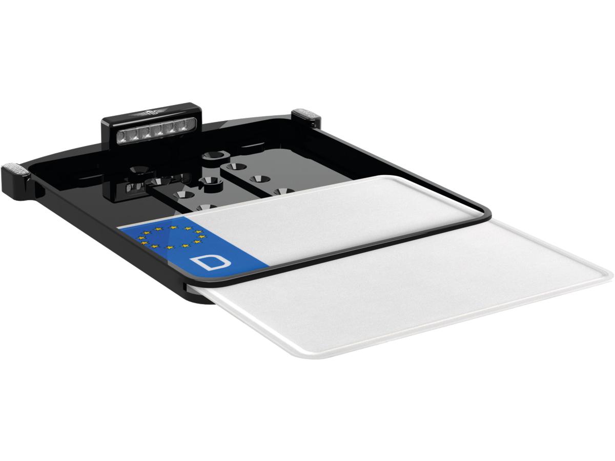ALL-IN-ONE MICRO License Plate Base Plate 3 in 1 and License Plate Light, Austria Size Black Anodized