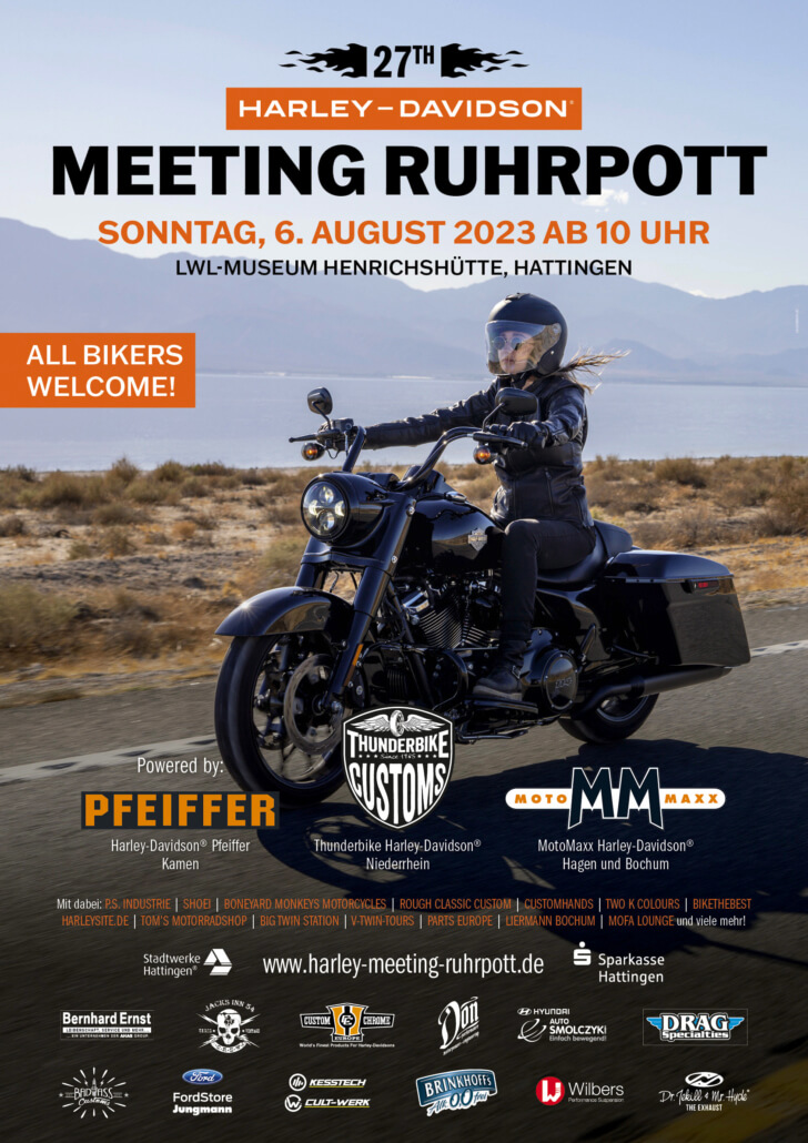 On August 06 the Ruhrpott Meeting will take place again in Hattingen. Custom Chrome Europe will be there with a booth and show the latest trends in accessories for American V-Twins. Tickets for the event are available in advance here: HD Motorrad Pfeiffer GmbH, HD Motomaxx Bochum, HD Motomaxx Hagen, HD Niederrhein Thunderbike and at K.F. Entertainment. Here also the link to the official website with the request for attention regarding parking fees etc.. https://www.harley-meeting-ruhrpott.de/
