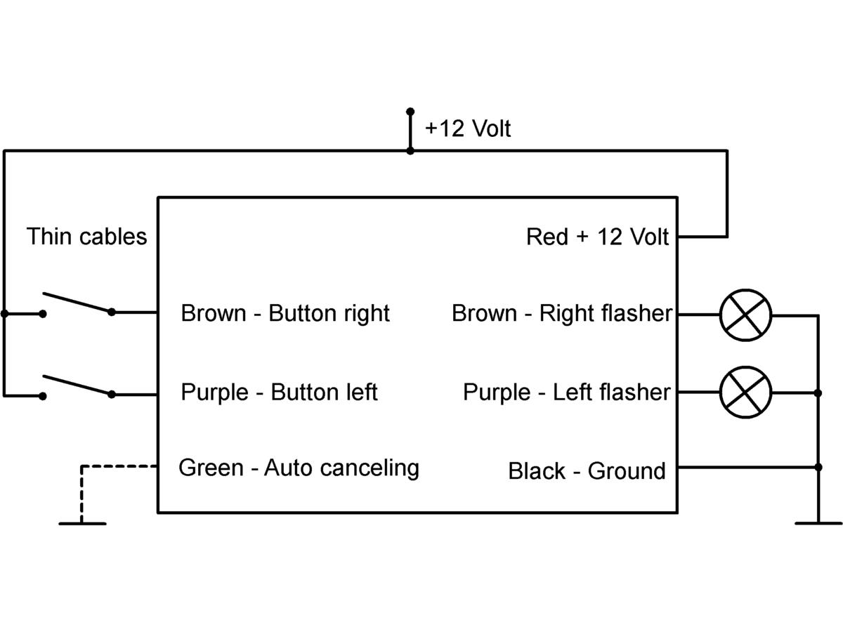 Este es un pequeño controlador de intermitencia para los pulsadores en un pequeño paquete lo que cabrá en cada manillar. Este dispositivo se controla a través de entradas de 12 voltios, lo que hace que sea más fácil de implementar en un arnés OEM existente si no se requiere un cableado mínimo. Se puede activar una función de auto cancelación. Apaga los indicadores después de un tiempo si no se pulsa ningún botón.