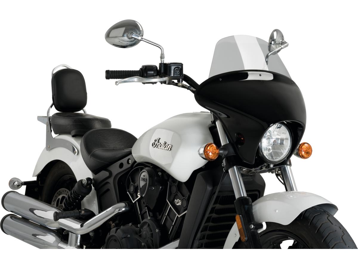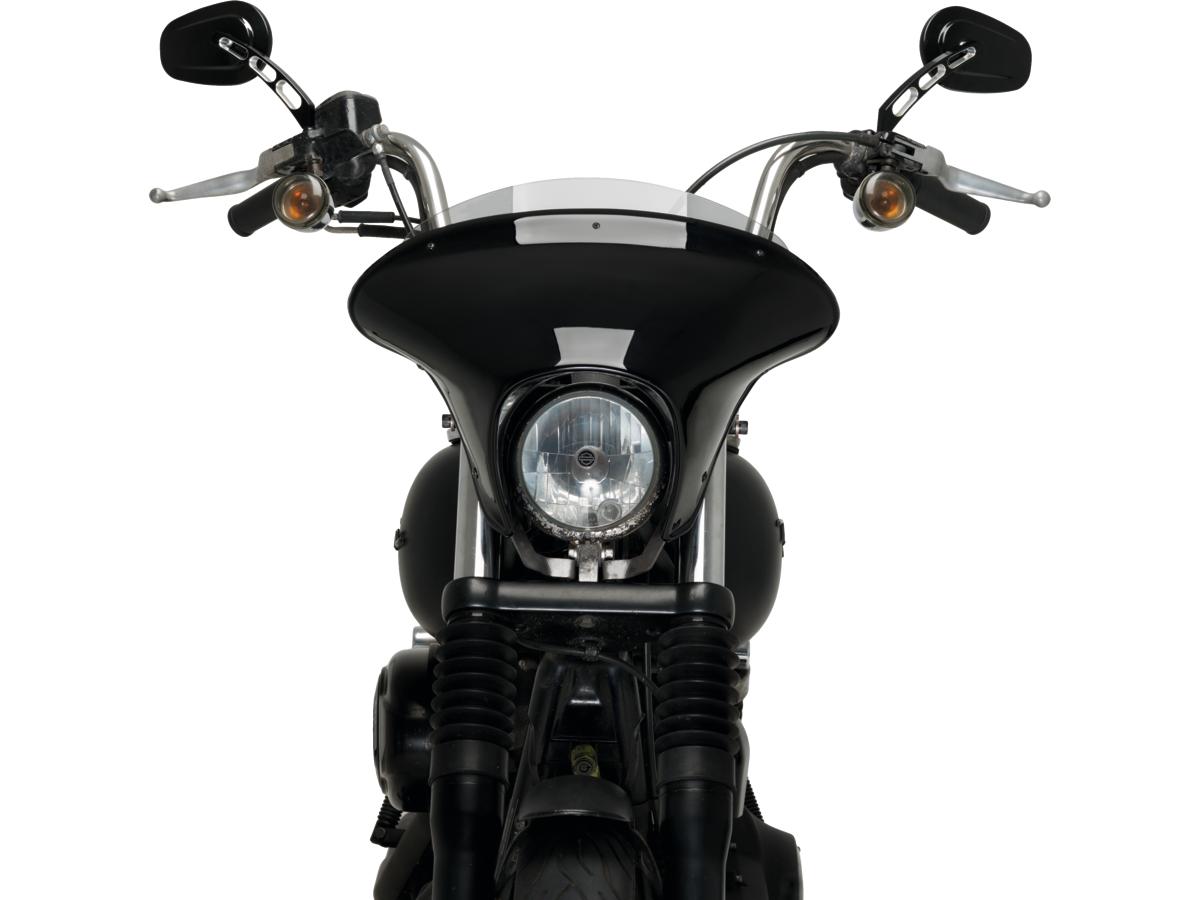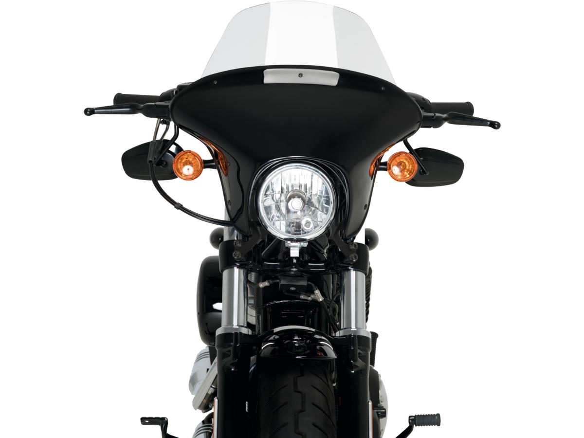 Realza el diseño de tu moto custom con el carenado Batwing SML, que cuenta con una elegante carcasa de plástico ABS negro. Las pantallas transparentes de PMMA están disponibles en dos alturas diferentes. Fácil de instalar con el kit de soporte relacionado con el modelo que contiene las instrucciones y la tornillería necesaria. Todos los kits de soporte junto con el parabrisas Batwing SML están homologados por la KBA alemana. Seleccione la pantalla de su elección.