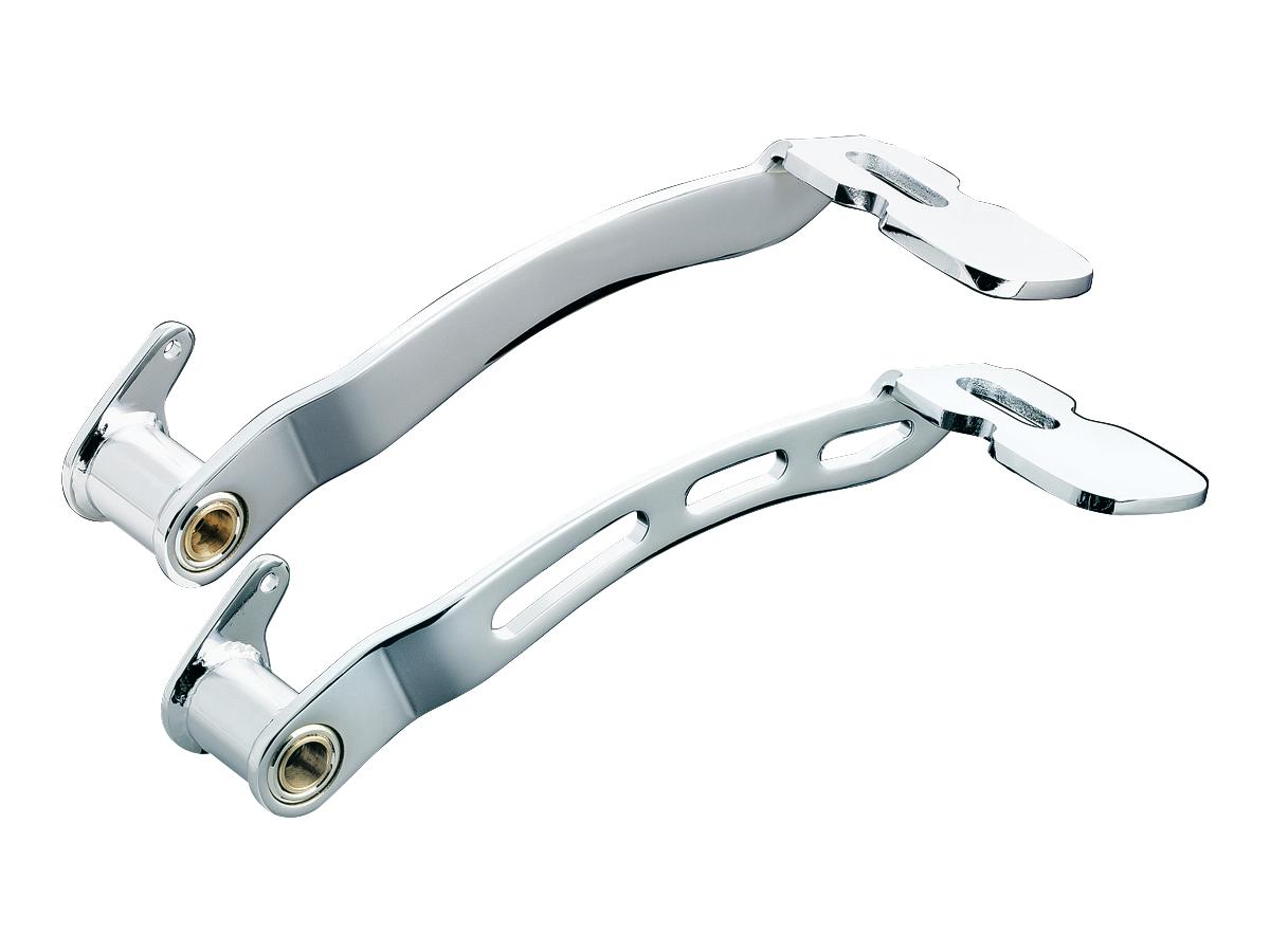 La respuesta a un mayor espacio para las piernas en los modelos H-D equipados con estribos. Ambos estilos de palanca mueven la ubicación de la almohadilla del pedal de freno hacia adelante y hacia abajo, al tiempo que aplanan el ángulo de la almohadilla. Ahora su pie ya no está "debajo" del pedal de freno, lo que resulta en un frenado más fácil y natural.