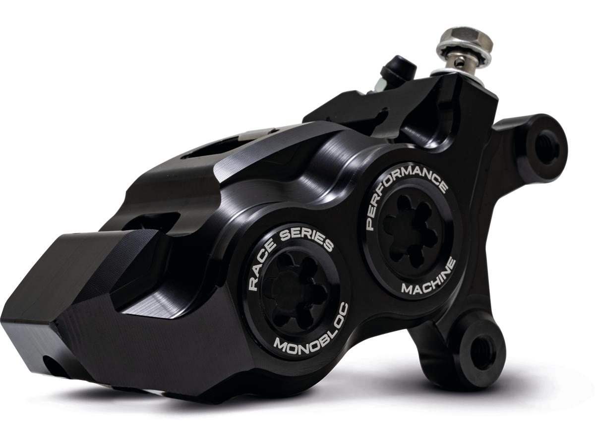 Fabricada a partir de una única pieza de aluminio macizo, la pinza monobloque Race Series no escatima esfuerzos a la hora de proporcionar la mejor potencia de frenado para las motocicletas H-D. Cuatro pistones de gran diámetro combinados con la rigidez extra de un diseño monobloque de diámetro diferencial proporcionan un asombroso aumento del 20% en la potencia de frenado sobre las unidades OEM. Las tapas de taladro mecanizadas en palanquilla Race Series y el logotipo Performance Machine grabado con láser proporcionan un estilo adicional que acompaña a las sustanciales mejoras de rendimiento.