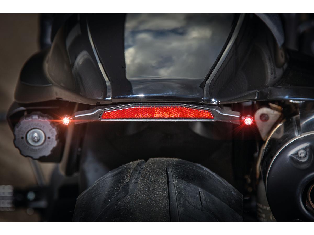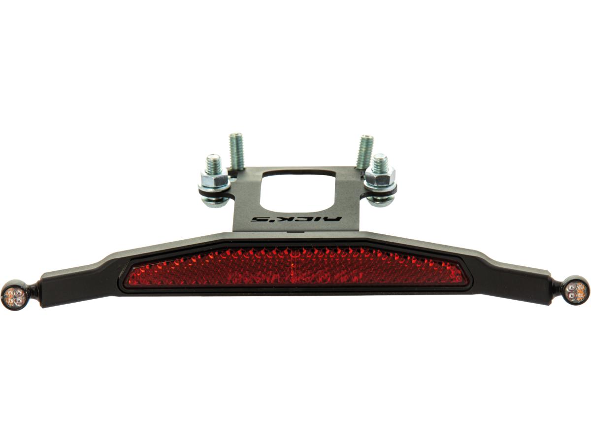 Para los modelos Sportster S del año 2021 en adelante, Rick's Motorcycles fabrica un soporte para el intermitente trasero que se monta debajo del colín original. Este kit está disponible sin el Kellermann Atto DF 3in1 fotografiado (disponible por separado). Un reflector rojo está empotrado en la carcasa recubierta de negro. Los puntos de montaje existentes se utilizan para la instalación. El material de instalación está incluido en el kit.