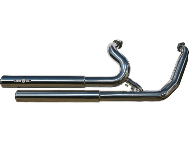 Top Chopp Staggered Floorboard Exhaust System , Without Heat Shield, Polished Smooth End Cap, Polished 2,5"