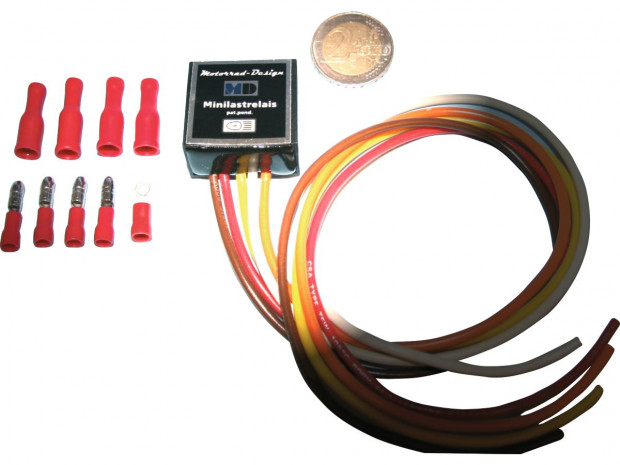 Très petit relais à semi-conducteurs à utiliser avec des boutons poussoirs pour passer des feux de route aux feux de croisement. Grâce à sa taille minimale, il peut être installé à l'intérieur du phare et passe des feux de croisement aux feux de route par simple pression sur un bouton.