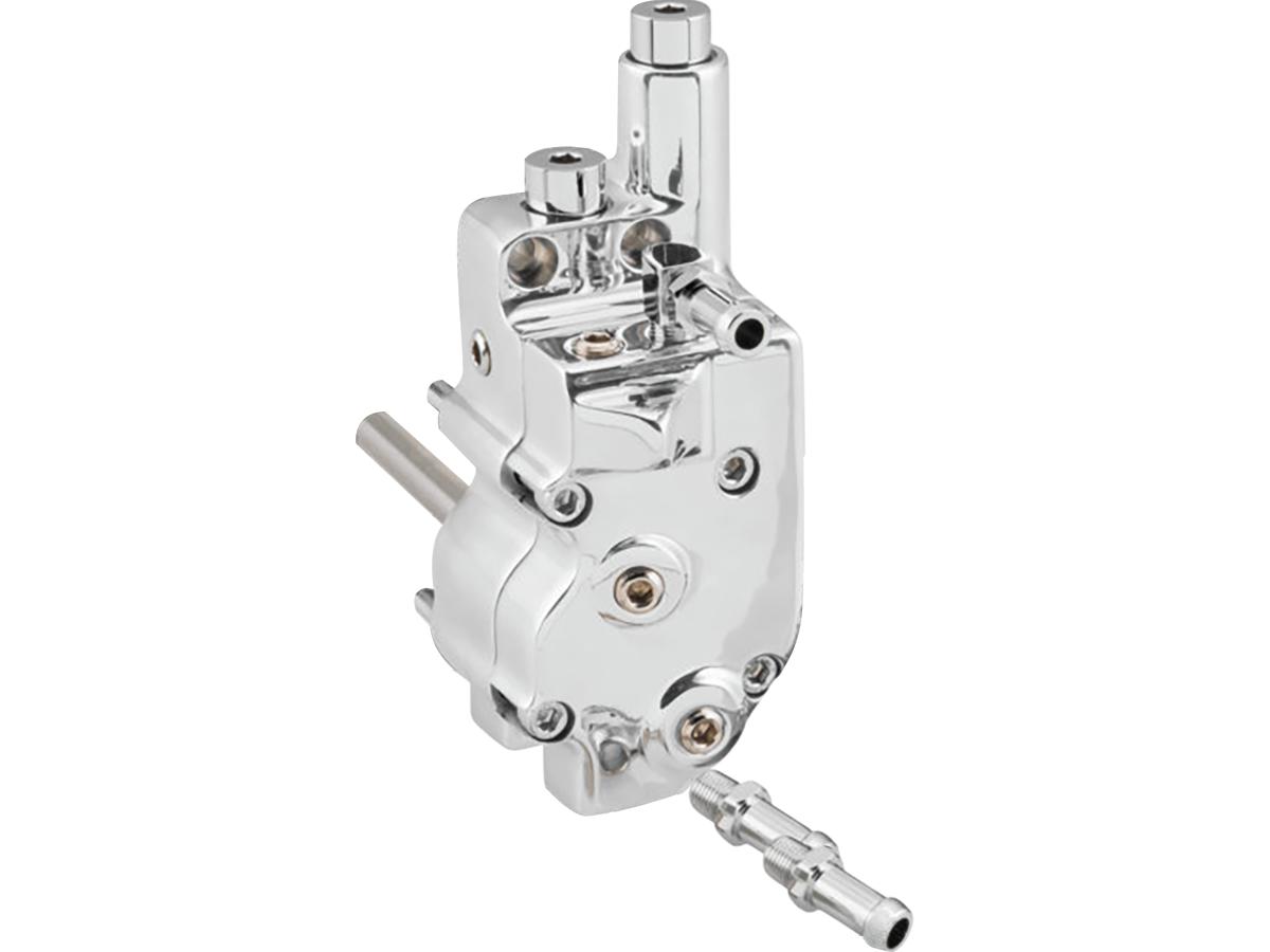 Une pompe de remplacement de type stock en aluminium poli disponible pour les modèles 73-99. Fabriquée en aluminium poli, cette pompe améliore la régulation de la pression d'huile vers toutes les parties du moteur. Comprend : Joints, matériel, engrenages