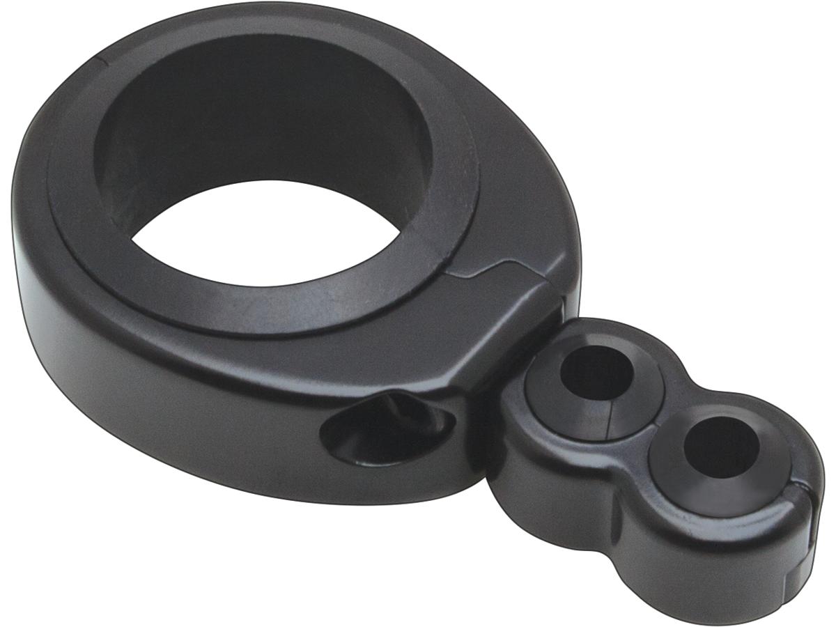 L'esclusivo design a due pezzi consente una facile installazione. Il design della testa girevole consente un passaggio più naturale dei cavi senza eccessive piegature. La finitura nera o cromata e l'innovativo morsetto a bullone singolo conferiscono un look pulito e personalizzato. Il morsetto lato tubo si adatta a tubi da 1 1/4" con guaina in gomma o a tubi da 1 1/2" senza guaina in gomma. Il lato del morsetto doppio o singolo si adatta a cavi con diametro di alloggiamento di 15/64" (6 mm), 9/32" (7 mm) grazie al distanziatore in gomma n. 1, 5/16" (8 mm) con distanziatore in gomma n. 2 o 11/32" (9 mm) senza distanziatore in gomma.