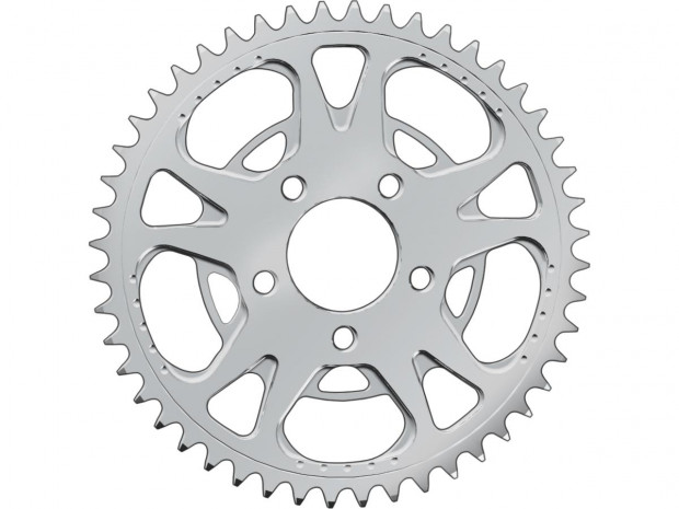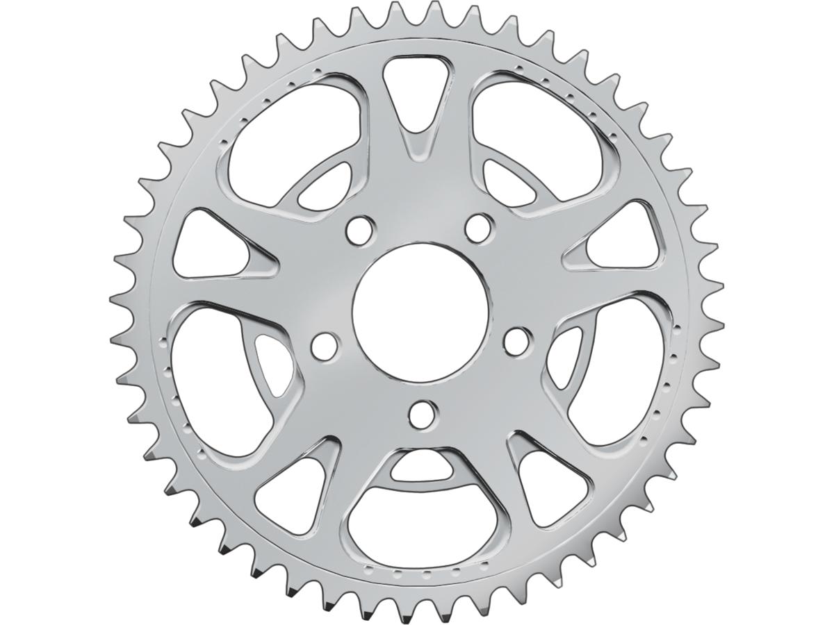 I pignoni RevTech per il lato sinistro sono piatti e forati per lo schema di bulloni OEM Harley-Davidson con un registro i.d. da 2,22 pollici per applicazioni 00-16 e includono un anello riduttore da 1,985 pollici per l'installazione su applicazioni 84-99. Lavorati da alluminio 7075 T6 di grado aeronautico e progettati per l'uso con la catena 530.