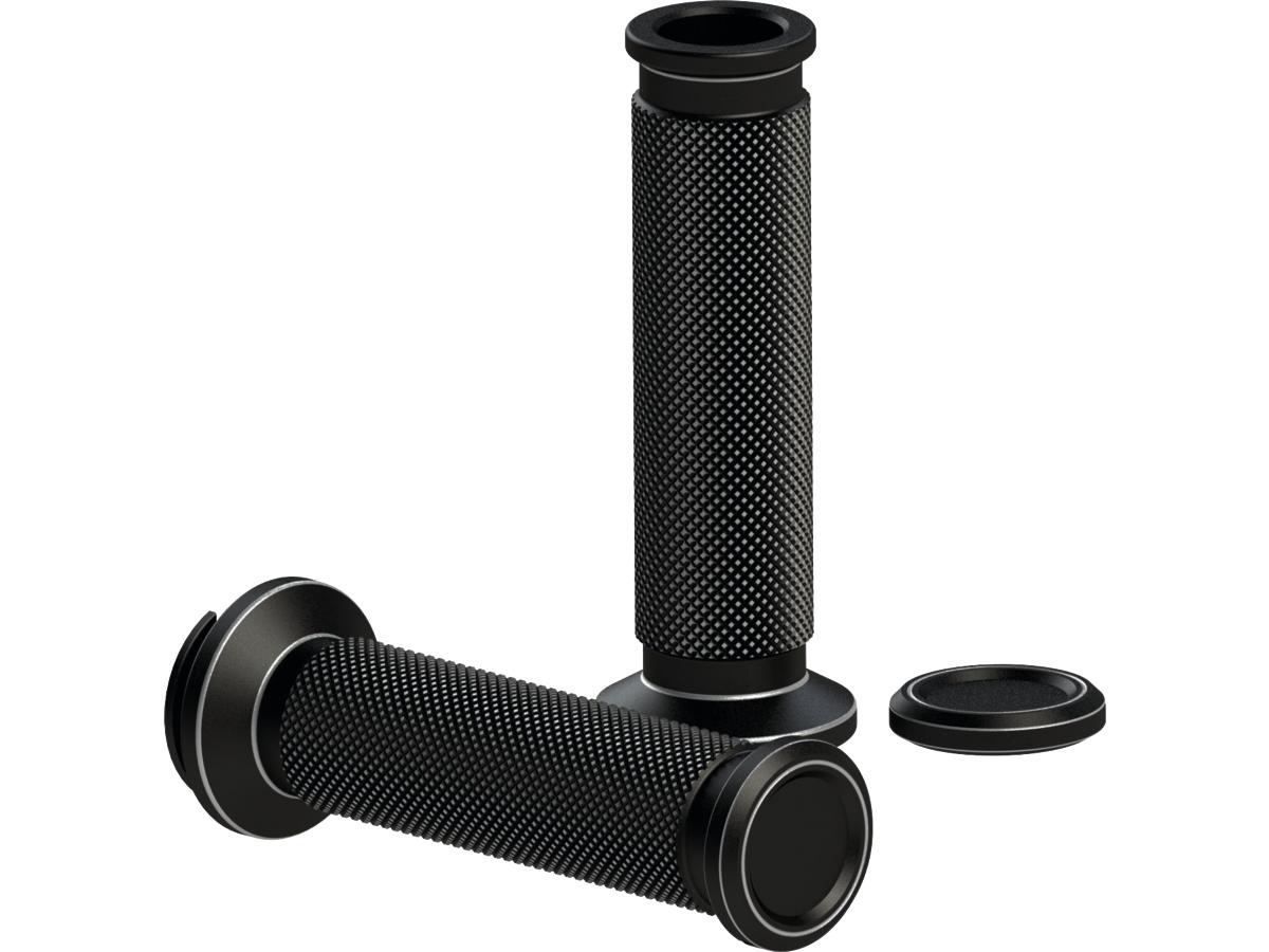 Queste manopole in alluminio lavorato Satin possono essere montate per abbinarsi ai sistemi di pedane Thunderbike Satin o come espediente indipendente. I topper abbinati sono inclusi.